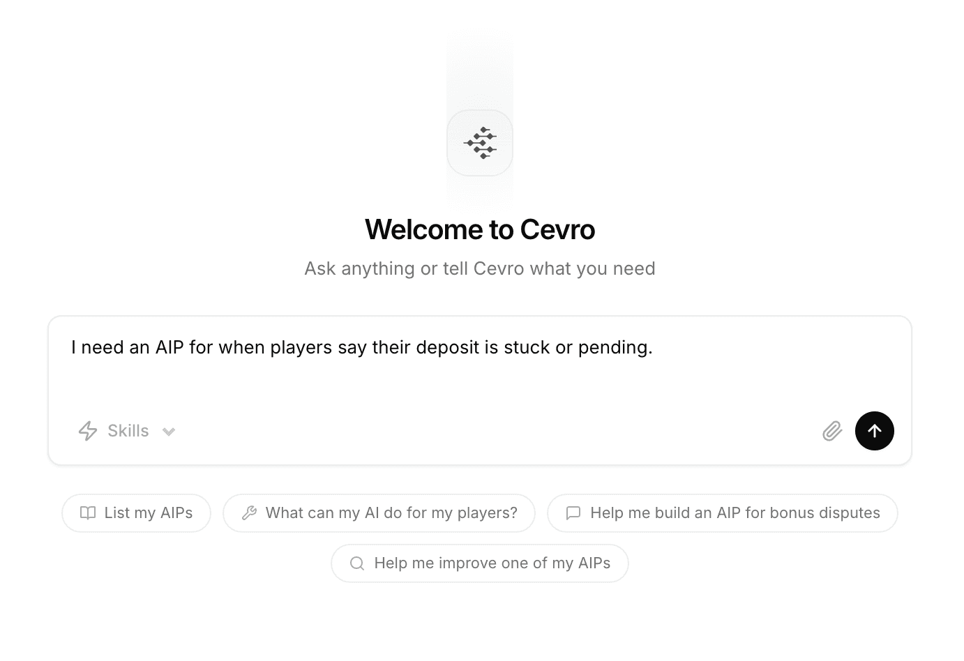 CevroScribe is the copilot that works alongside your team — from building your initial operation, to diagnosing issues, to building tailored workflows when needed. It's your intelligent partner that understands iGaming, understands your operation, and helps you make confident decisions fast.